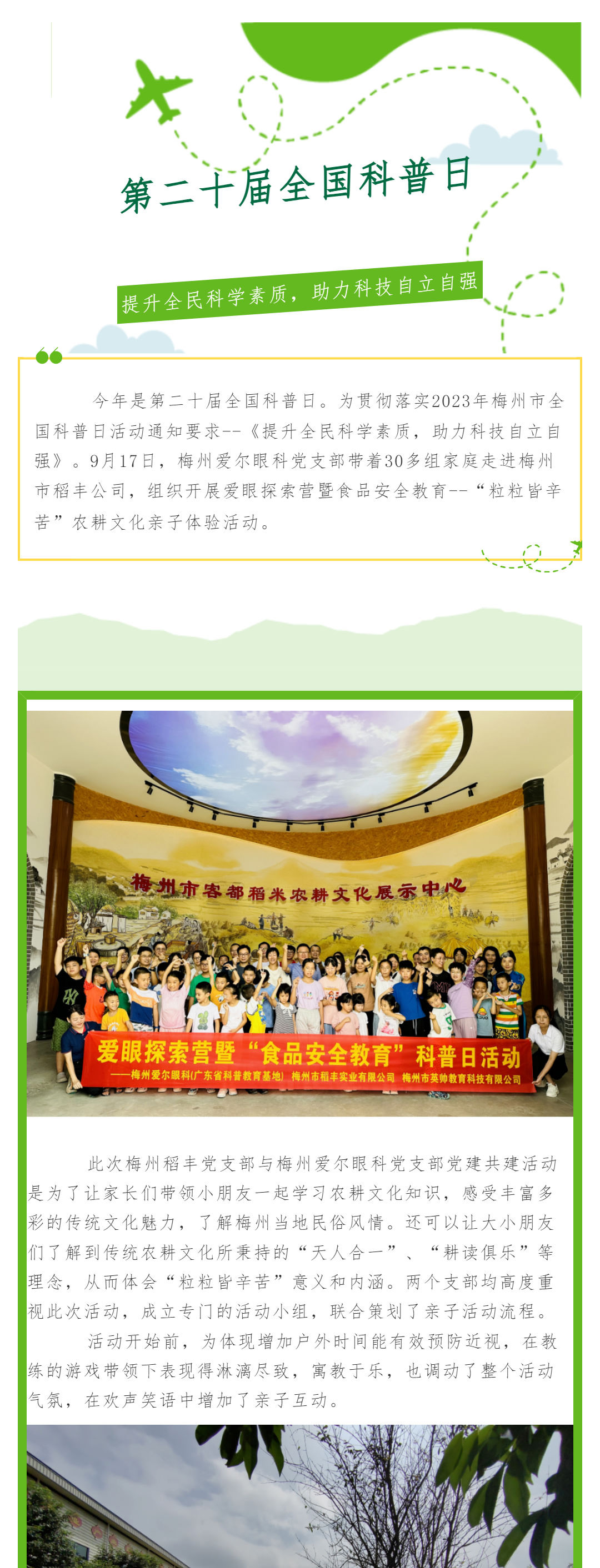 梅州稻豐黨支部與梅州愛爾眼科黨支部開展愛眼探索營暨食品安全教育科普活動